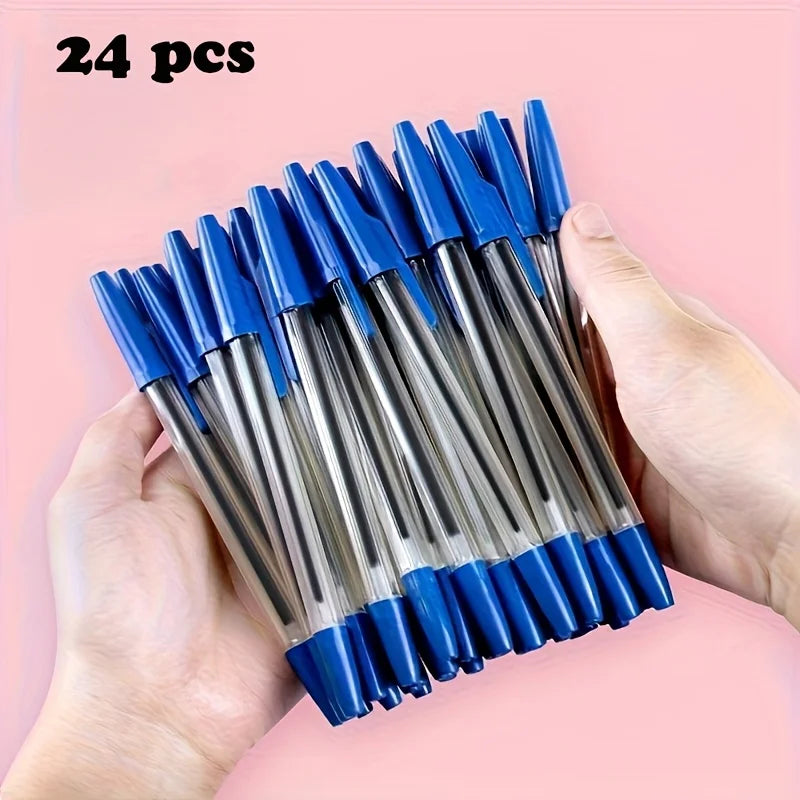 6pcs/24pcs/12pcs Blue 1mm Fine Ballpoint Pens, Smooth Writing, Suitable for School Supplies, Office Supplies, Quick-Drying