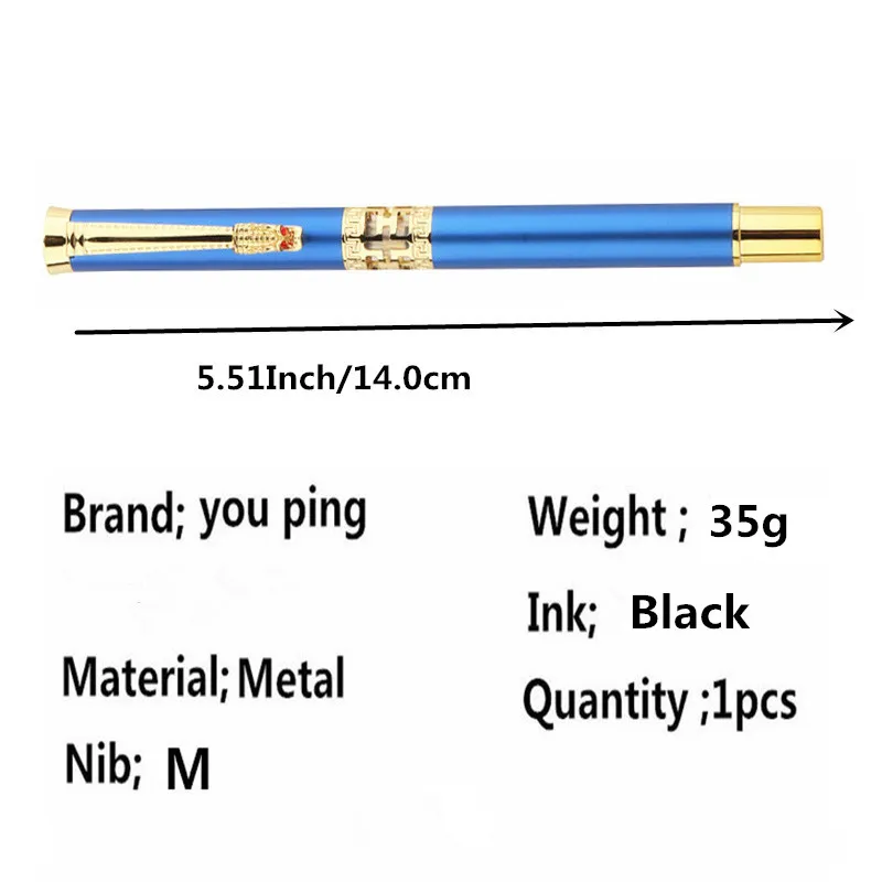 Blue Colour Golden Carving Mahogany Business Office Rollerball Pen School Student Supplies