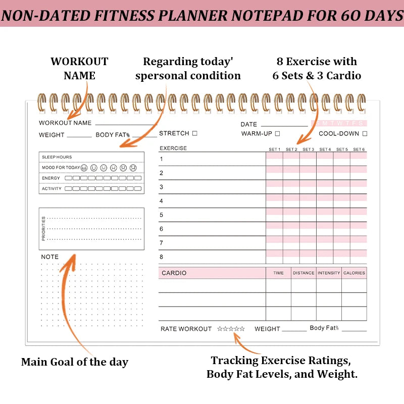 1PC Self-discipline Fitness Plan Check-in Task Daily Plan Book Habit Development Time Management Axis todolist Monthly and Weekly Planning