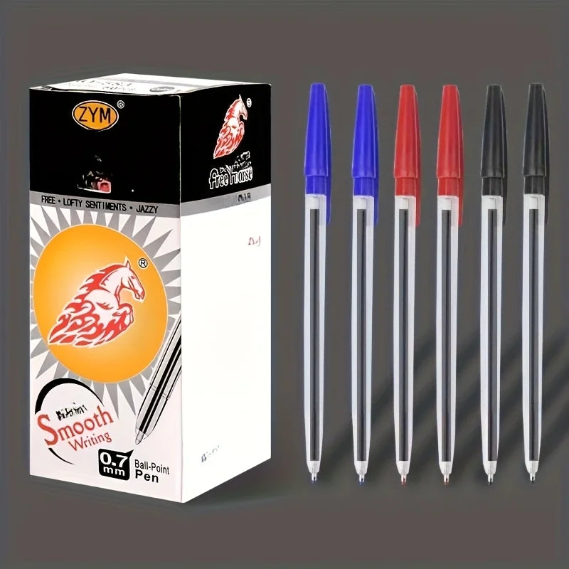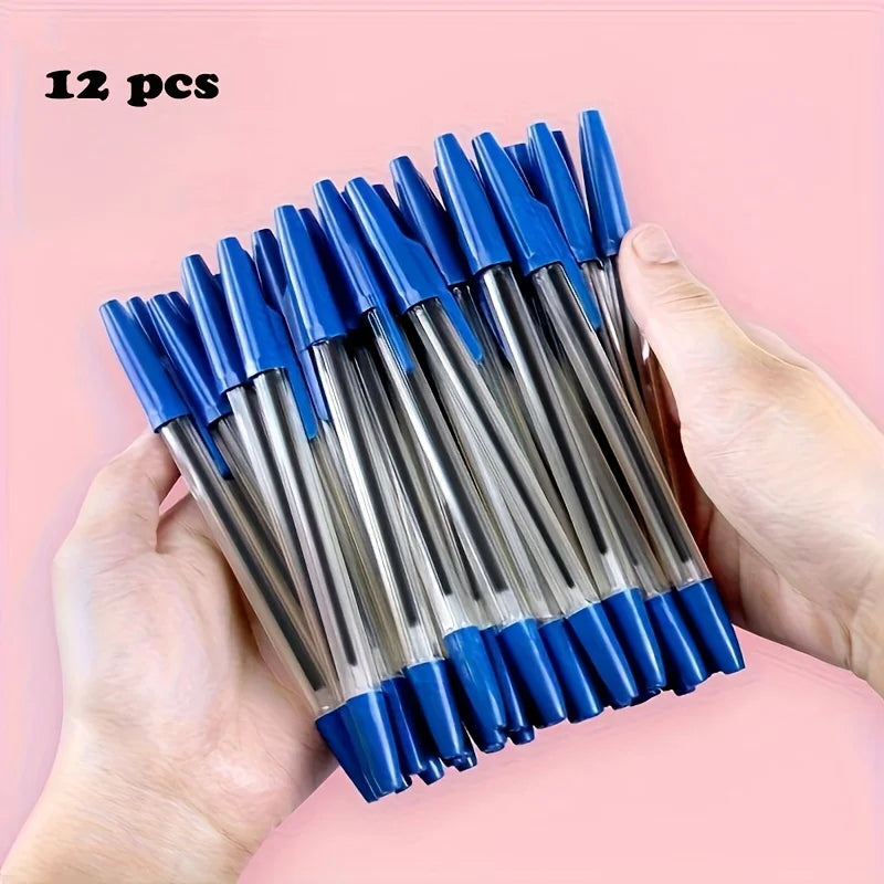 6pcs/24pcs/12pcs Blue 1mm Fine Ballpoint Pens, Smooth Writing, Suitable for School Supplies, Office Supplies, Quick-Drying